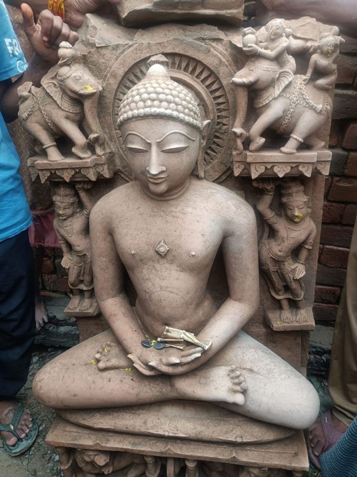 खेत की खुदाई के दौरान एक अद्भुत और प्राचीन जैन प्रतिमा प्राप्त हुई है।